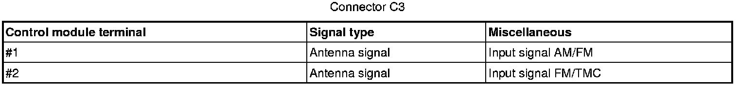 All values below are measured between the relevant terminal in column 1 and C2-8 in column 2 (power ground) unless otherwise stated in parenthesis after the table entry.