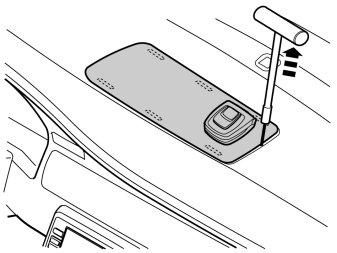 - Insert special tool, 999591946 in the joint between the loudspeaker grille and the dashboard approximately as illustrated, until it engages.