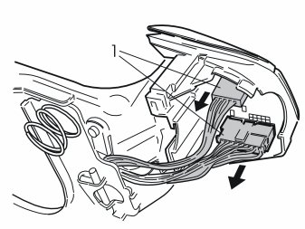 Disconnect the connectors (1) for the keypad. Press the catches in.
