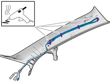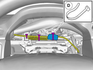 Clamp the cables and connectors to the existing cables to prevent noise.
