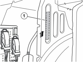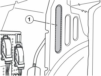 - Clean the reverse side of the embossing (1) on the plate in front of the fuse holder with a mixture of 20 % isopropyl alcohol (P/N 1161721) and 80 % water.