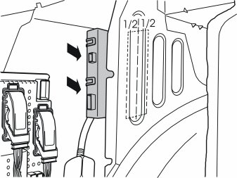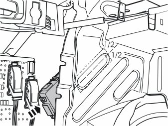 - Attach the trailer module to the newly installed Velcro fasteners on the rear edge of the left-hand rear wheel housing. Press firmly so that it is secured.