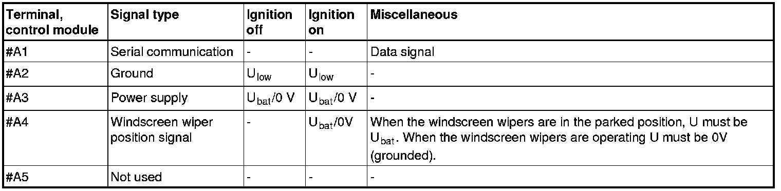 The following values are measured between the relevant terminal in column 1 and terminal #A5 (signal ground) unless otherwise stated.