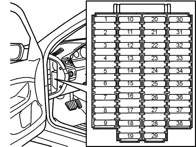 Fuse holder in passenger compartment/cargo compartment. See Connector fuse holder, repair Connector Fuse Holder, Repair.