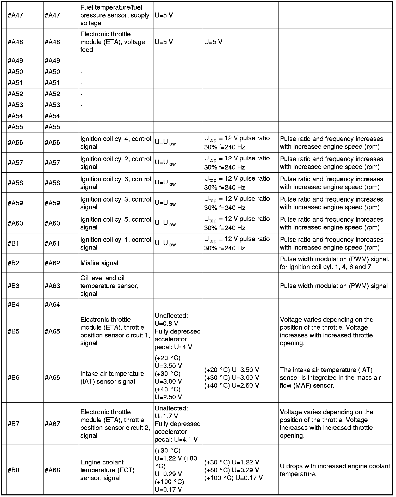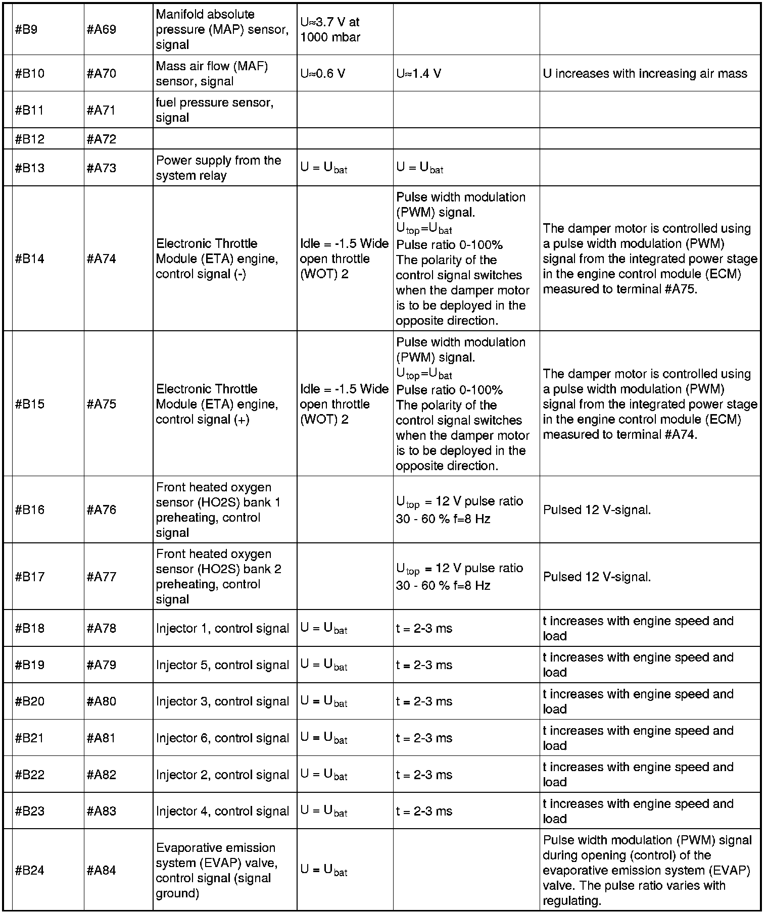 Signal Specification, Engine Control Module (ECM)