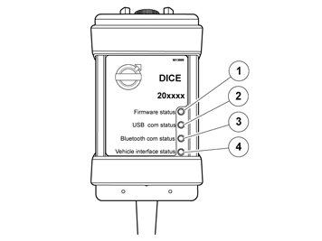 3. Fault code indicator, blue. When the blue light flashes with brief flashes DiCE indicates that there are fault code signals on CAN LS or CAN HS.