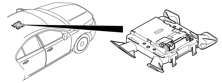 The receiver is in the rear view mirror and transmits signals to the upper electronic module (UEM). These signals determine: