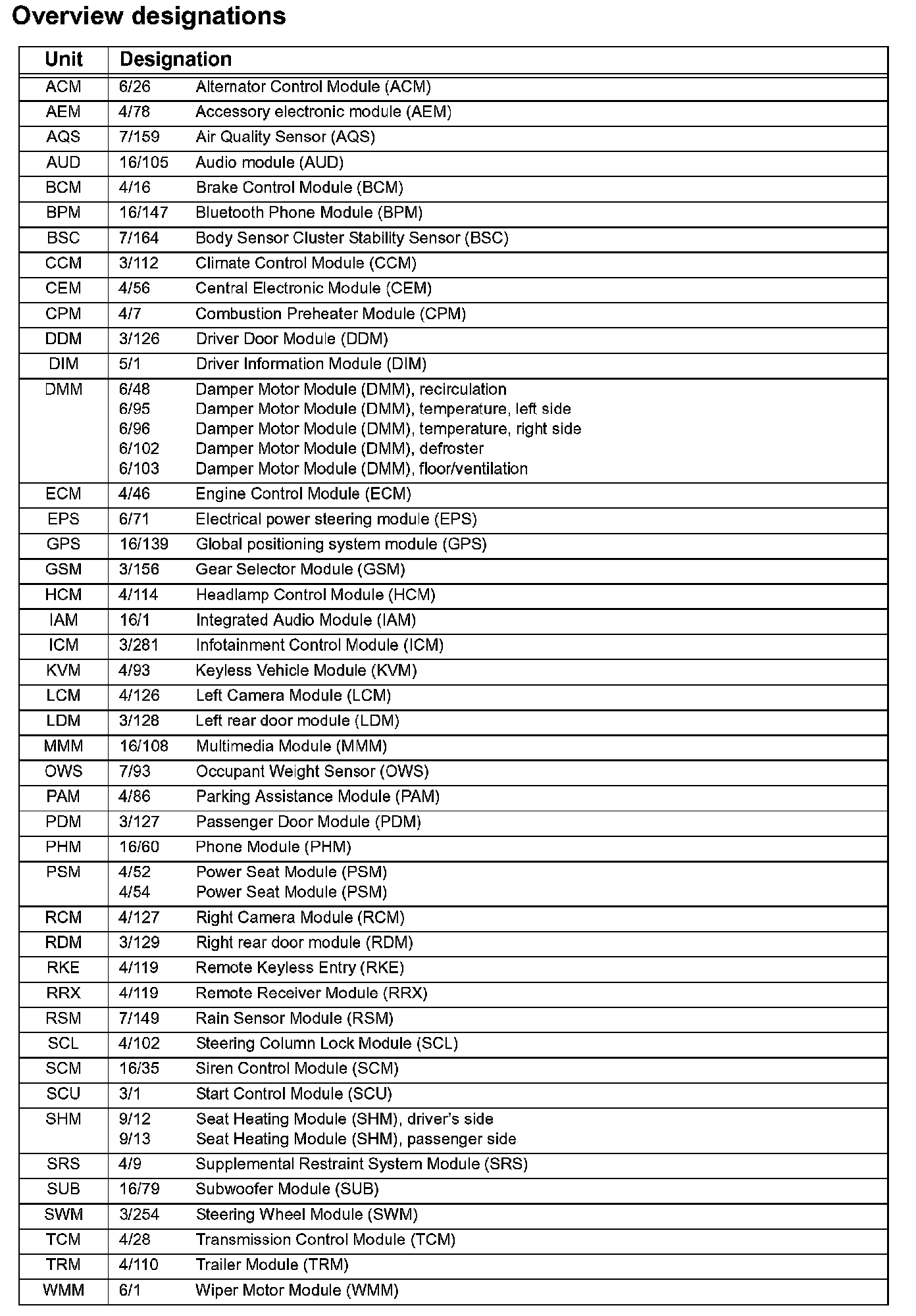 Overview Designations