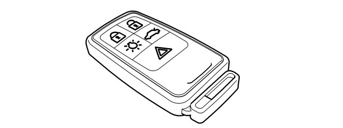 The remote key has a built-in communication circuit and a memory. A coded signal is sent when a button on the remote key is pressed. This signal is received by the Remote Receiver Module (RRX) receiver and forwarded to the central electronic module (CEM). For the remote key to work with the system, a unique code in the remote key must be learnt by the central electronic module (CEM). This takes place during installation at the factory.