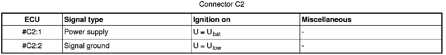 All values that are given for connector C2 are measured between each terminal given in column 1 and #C2:2 (ground terminal).