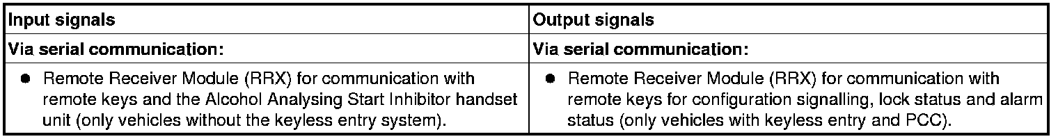 The table below summarizes the input signals and output signals to and from the Central electronic module (CEM).