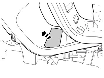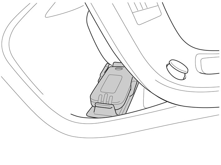 Note! The cradle for the alcohol lock can be positioned either on the thin rubber mat in front of the centre console or on the left hand side of the rear edge of the storage compartment under the armrest in the tunnel console.The thin rubber mat must be purchased separately for cars with the thicker mat.The work is carried out the same way on left and right-hand drive cars, but mirrored on right-hand drive cars. Left-hand drive car shown.