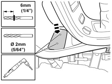 - Disconnect the clips with cable (certain models) and reroute the cable so that it is not in the way of drilling. Check that nothing else obstructs the drilling.