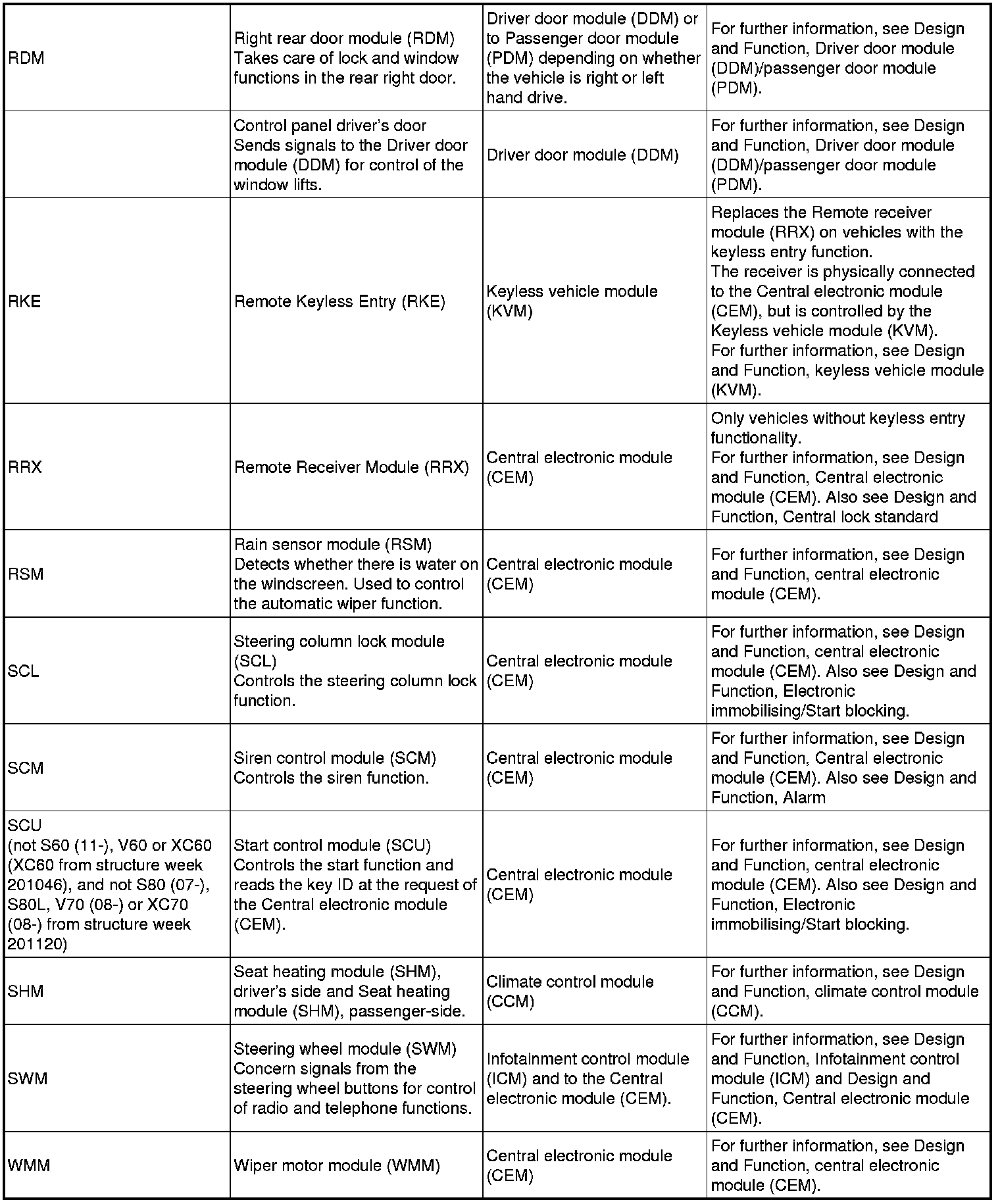 Note! The illustration above and the table below is an example that shows model year 2007. All other information in the document is general and applies to all model years.