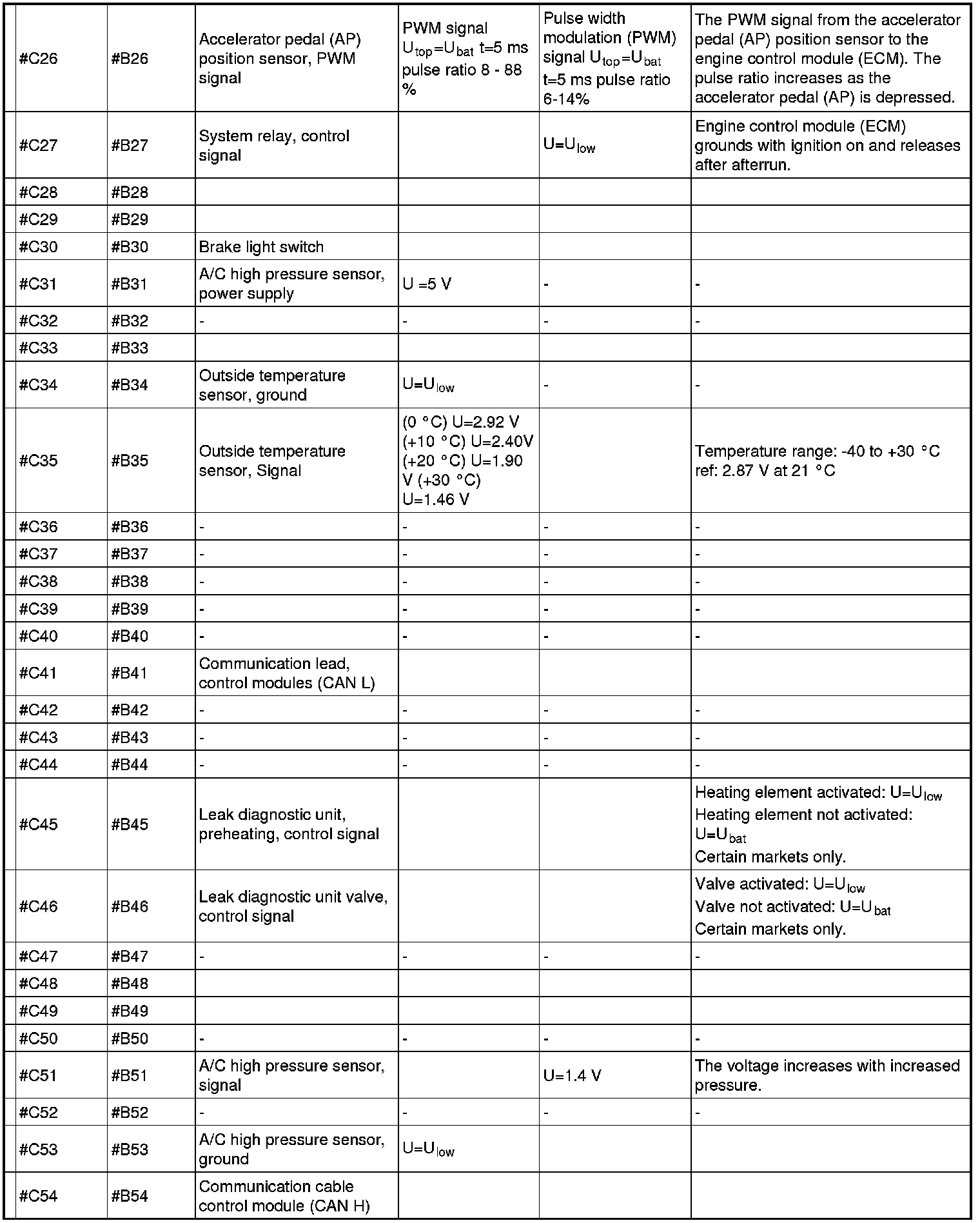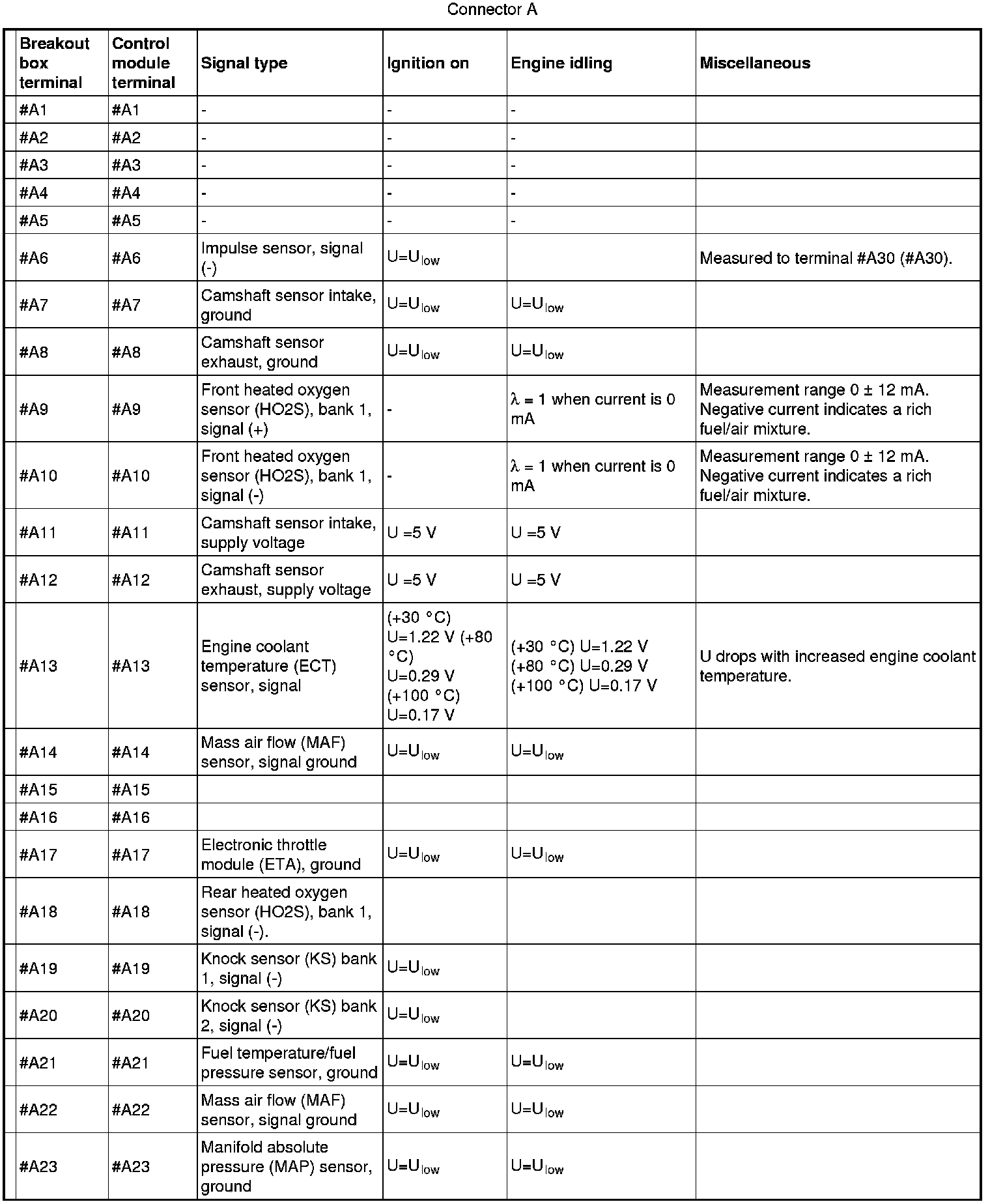 All values indicated below are between respective connection in column 2 and column 1 (on the breakout box). If this is not the case, it is indicated within brackets.