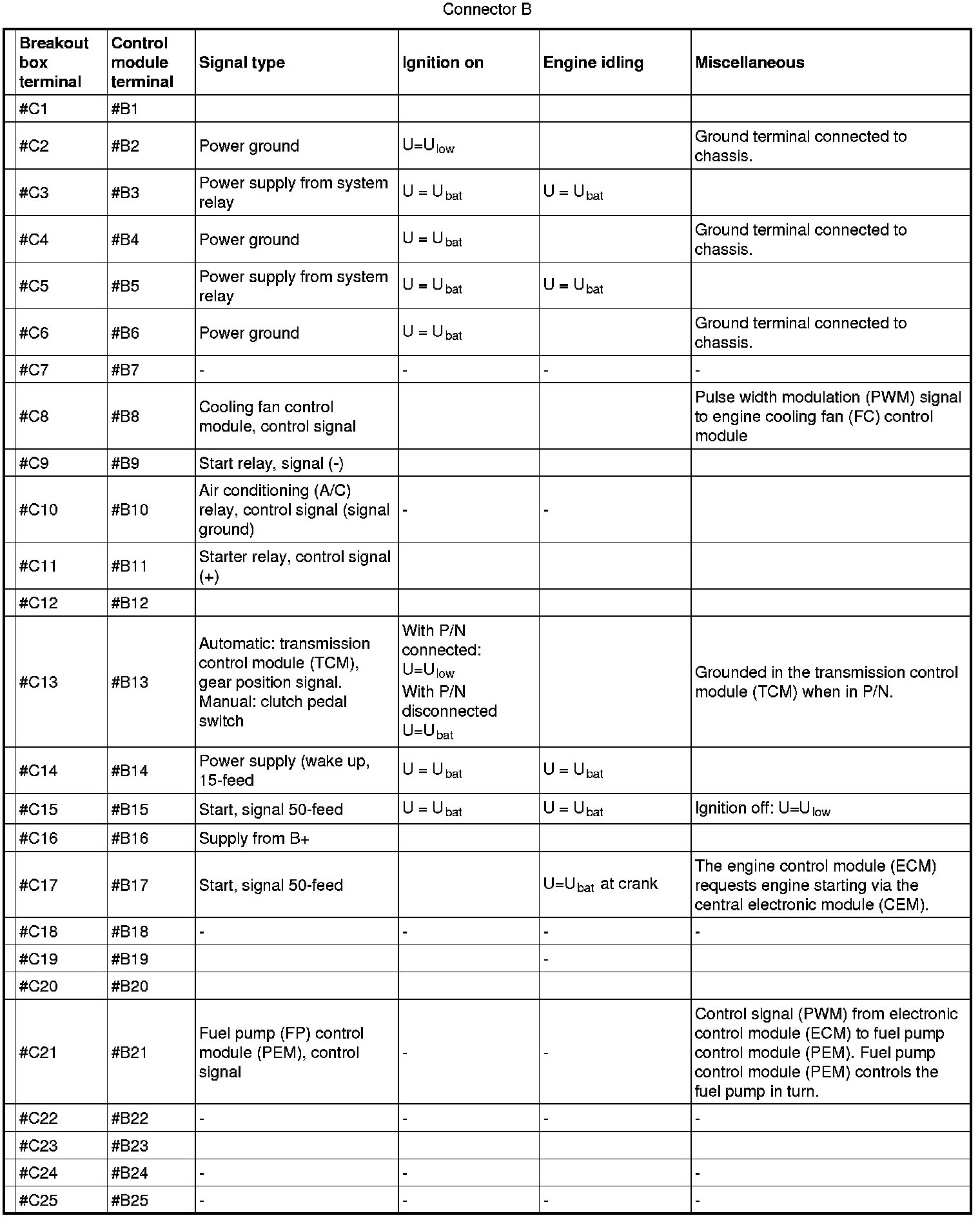 Connector B (58-pin engine side) corresponds to terminals #C1 - #58 on the breakout box.