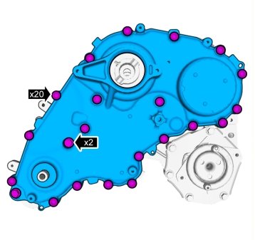 Insert all screws - 20 M7 screws and 2 M8 screws. Do not tighten
