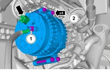 - Tighten, alternator B+ connection. Refer to Specifications [1][2]Specifications