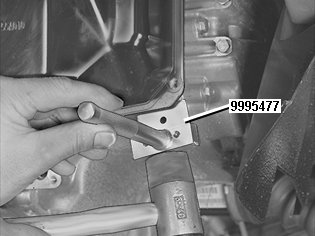 Use joint wedge 999 5477 JOINT WEDGE 999 5477 JOINT WEDGE , which is carefully tapped in between the cover and transmission so that the cover's sealing flange is not warped.