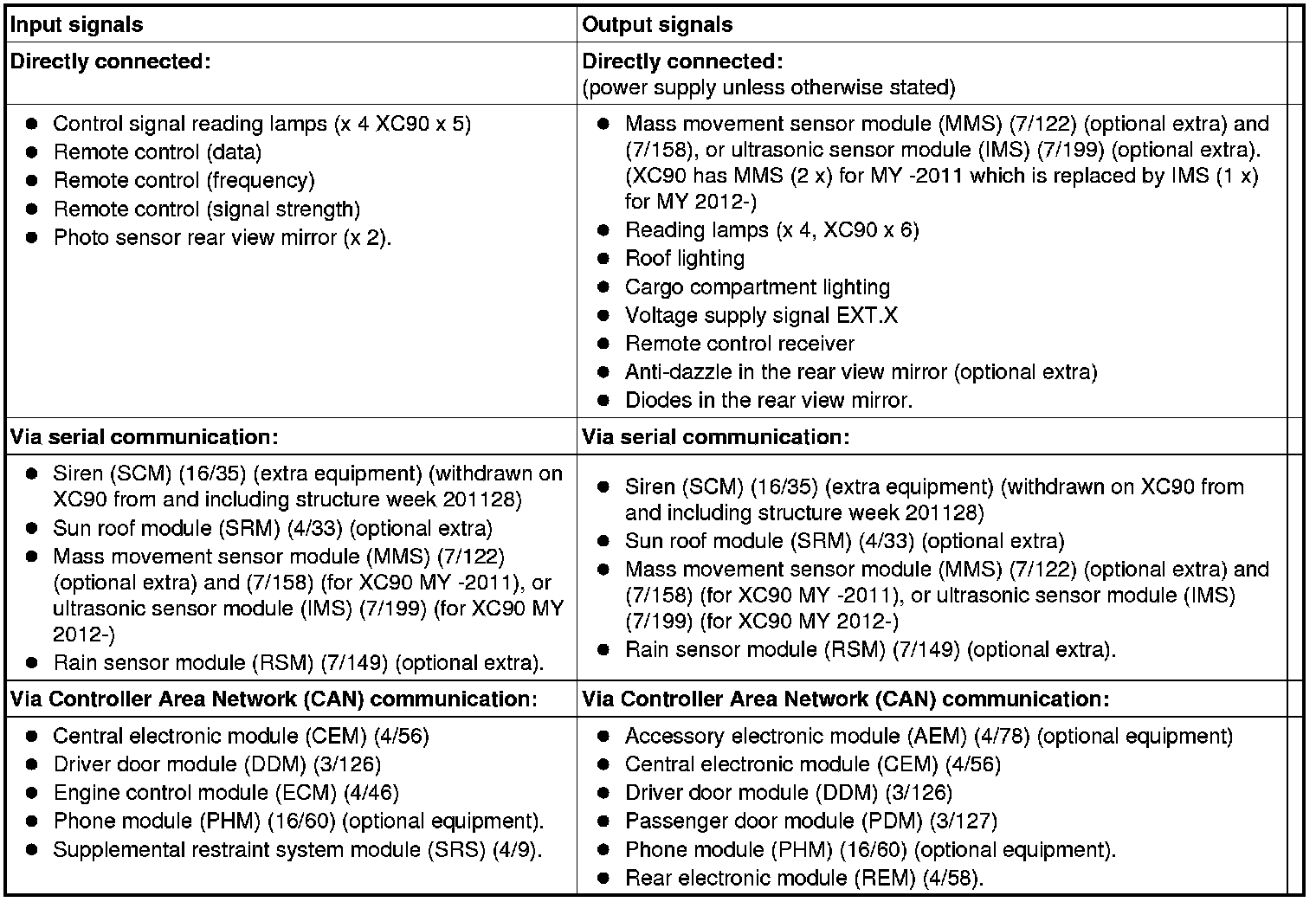 - Mass movement sensor module (MMS) (does not apply to the XC90 MY 2012-)