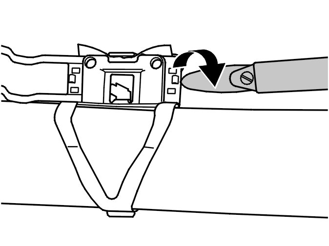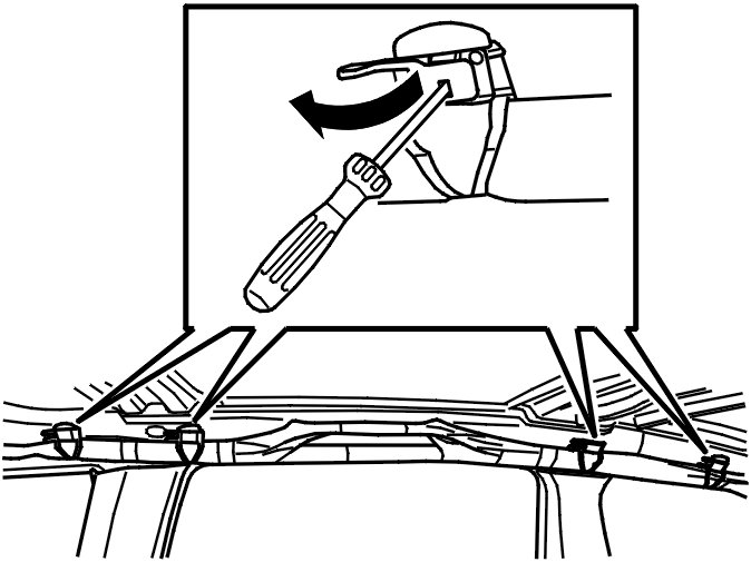 Insert the weatherstrip tool between the support clip and the bodywork. See the illustration.