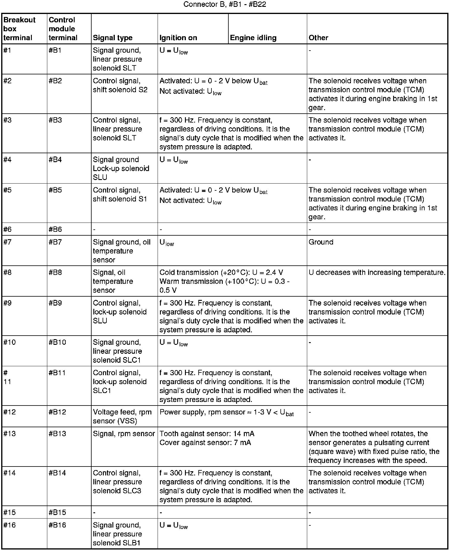 Connector B (22-pin to transmission) corresponds to #1 - #22 on the breakout box.