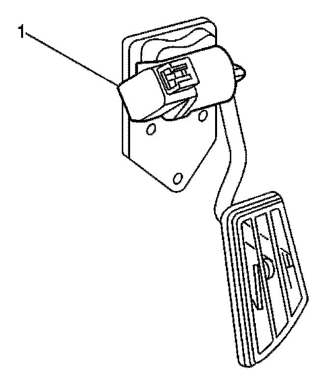 Accelerator Pedal Position (APP) ModuleThe APP module (1) contains three potentiometers (a device for measuring an unknown voltage or a potential difference by comparison to a standard voltage). Each of the APP sensors send a varying voltage to the PCM. By monitoring the output voltage from the accelerator pedal position (APP) module, the PCM can determine the fuel delivery based on the accelerator pedal position (driver demand).