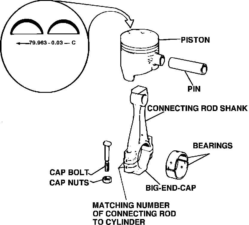 Oversize pistons are available in .004, .008, .016, .024 and .031 inch sizes. Oversize pins are available in .0079 inch oversize.