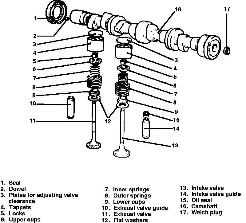 2. Turn crankshaft until lobe controlling tappet being checked is pointing upward and is at right angles to tapped plate.
