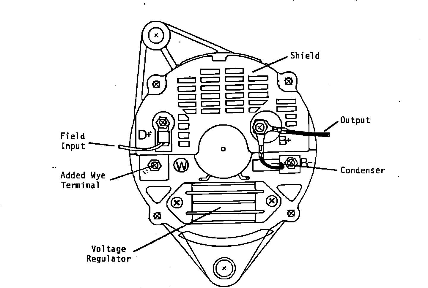 GENERAL: Alternator REAR HOUSING design has been changed. This includes changes to the stator windings, rectifier assembly, voltage regulator, rear shield, and the addition of a "W" (Wye) terminal.