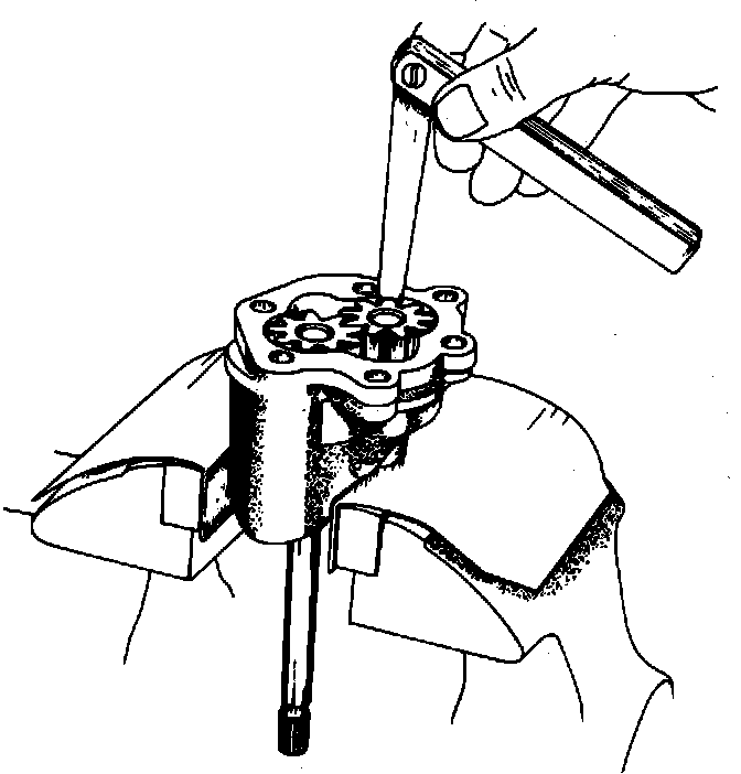 17. Check clearance between pump drive shaft and pump housing. Clearance range is .0006-.002 inch with a maximum allowable clearance of .004 inch.